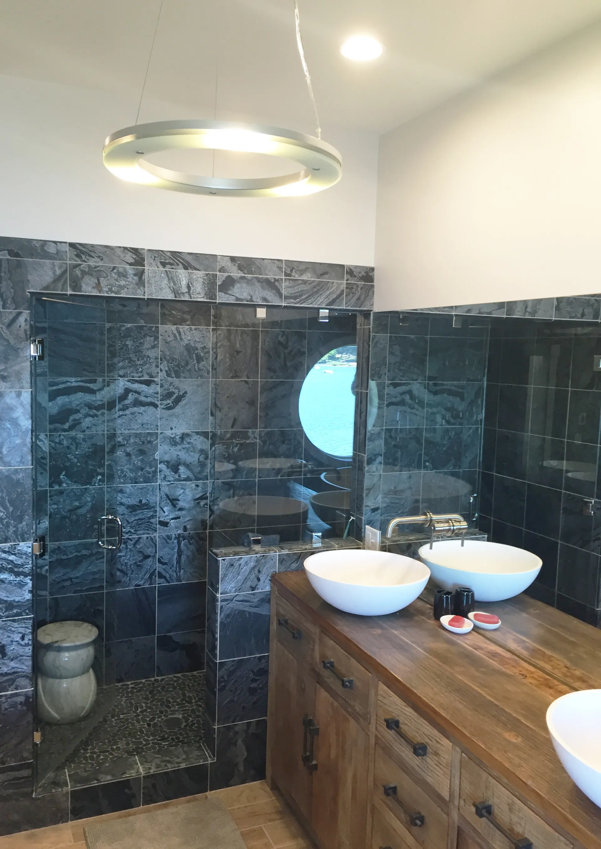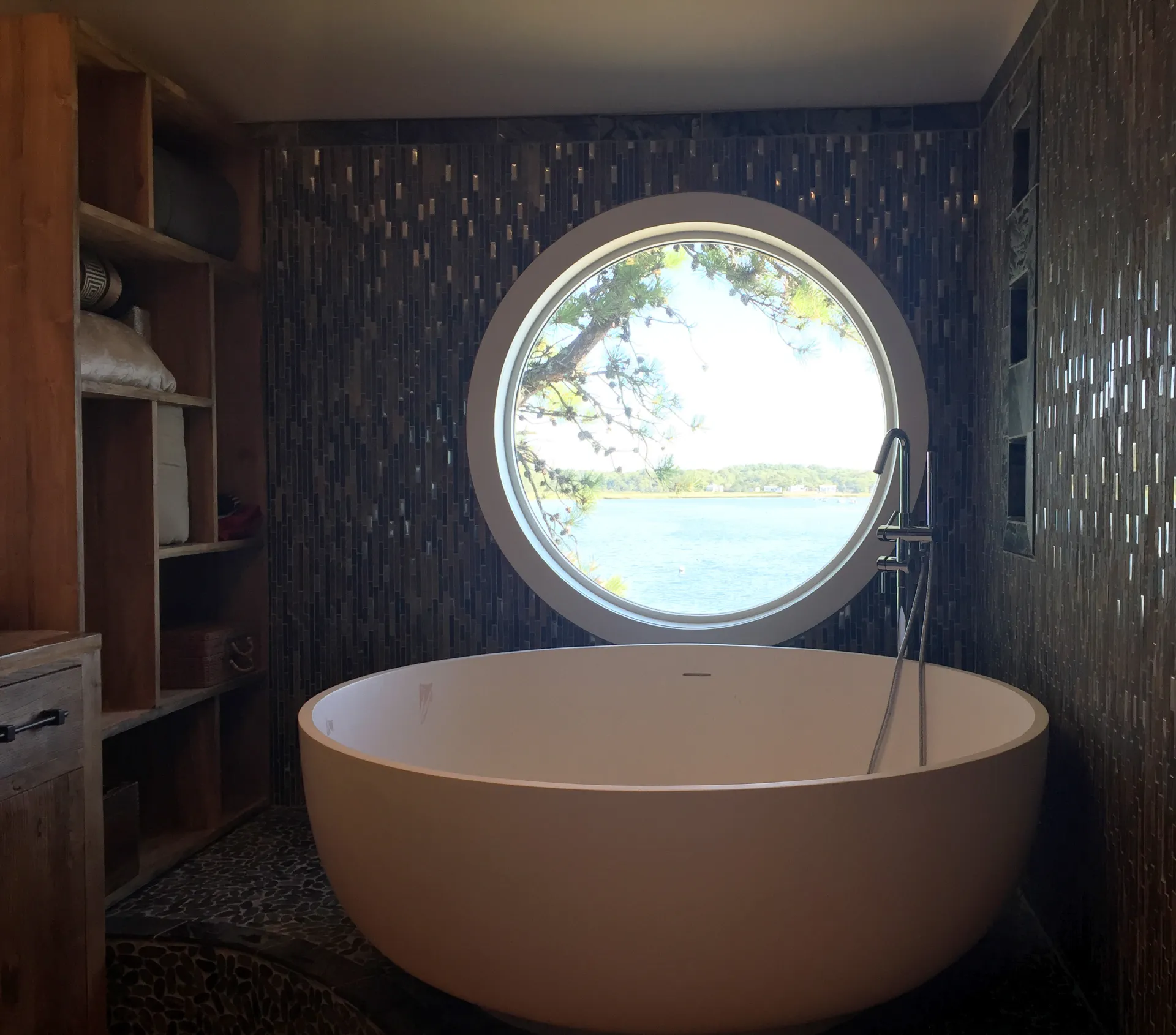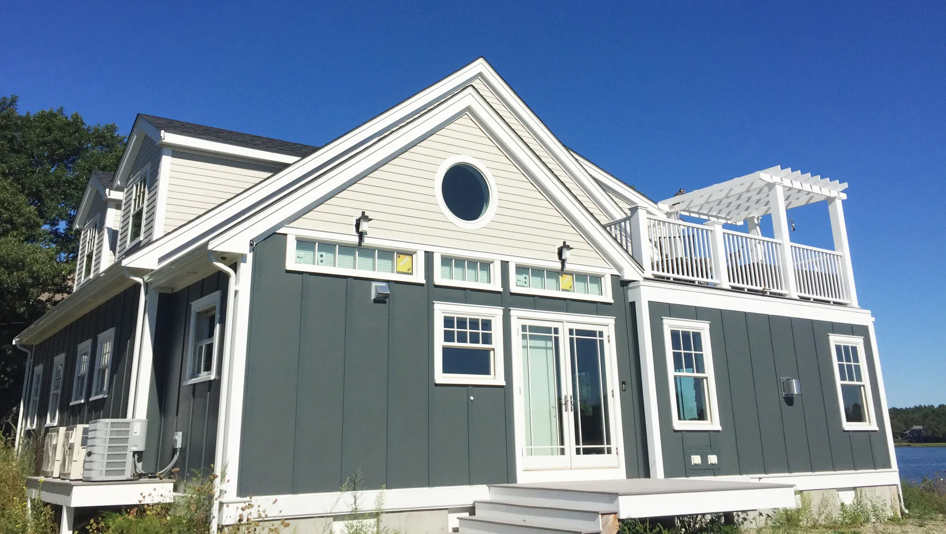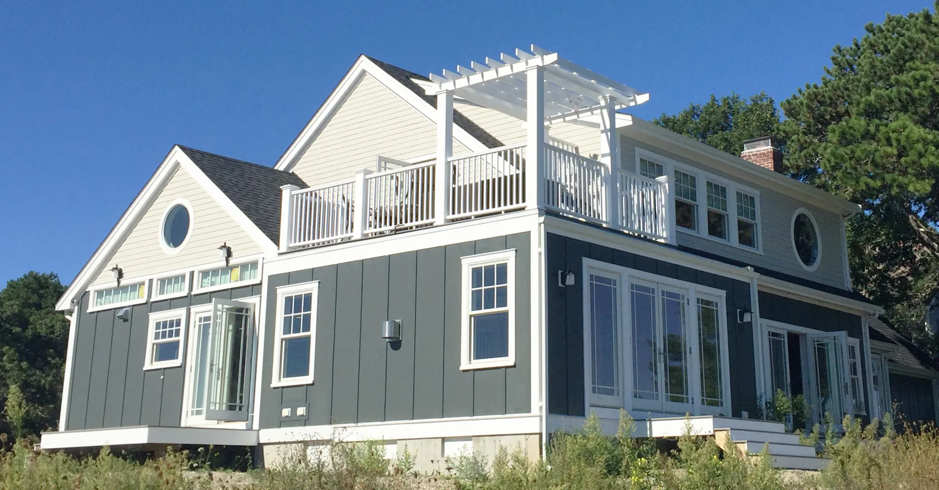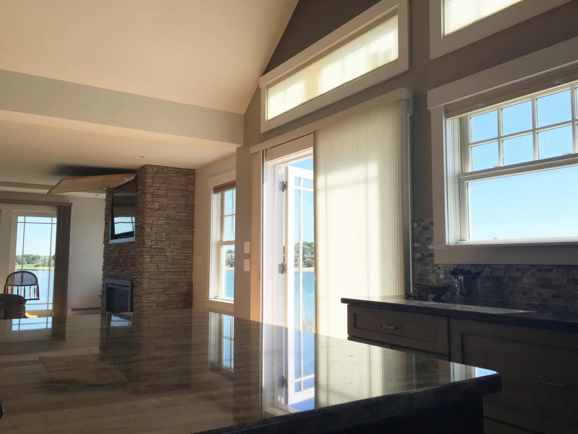 The driving factor behind this project was maximizing views to the water. We did a complete interior & exterior renovation with an open concept living and dining area, a modern kitchen and breath-taking roof deck. Windows were located so no matter where you are in the house there is a connection to the water.